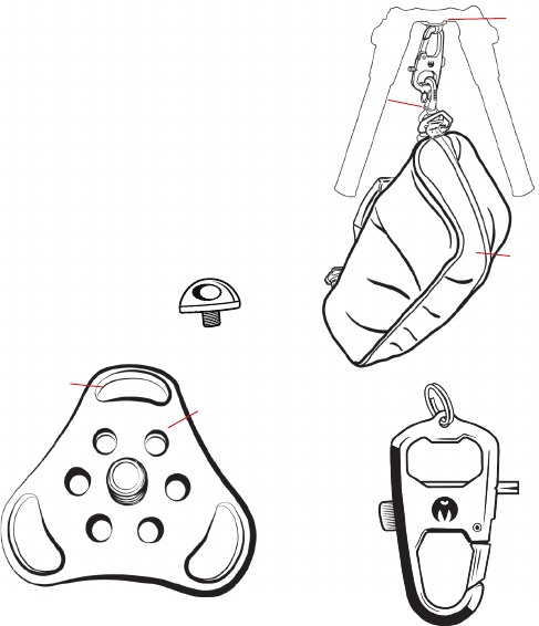 carabiner, six 1/4” threaded holes (b) and one 3/8”