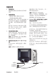 控制項 說明(續) __________________________________________________________________________________ 消磁(Degauss)用於消除可造成屏幕圖像邊縁色彩不規則的 磁場積累。有兩種顯示器消磁方式:開啟顯示器的自動消磁, 或選擇屏幕菜單上 Degauss (消磁)控制項手動消磁。 從菜單上選擇 Degauss(消磁),按下[2]按鈕手動為使顯示 器消磁。 要點:切勿重複手動消磁。否則會損害顯示器受損。至少等20 分鐘後才能再次選擇此控制項。 ViewMatch® 色彩(ViewMatch® Color)用於提供不同的色 彩選項:幾種預設色溫和 User Color(用戶色彩),後者可用 於調整紅(R)、綠(G)、藍(B)三種色彩。此產品之出廠 值為 9300K(9300 開氏溫度)。 9300K— 用於給屏幕圖像中添加藍色,形成偏冷白色(常 用在採用螢光燈照明的辦公環境中)。 6500K— 用於給屏幕圖像添加紅色,形成偏暖白色和更鮮 豔的紅色。 5000K— 用於屏幕圖像中添加藍色和綠色形成更濃重的色 彩。 User