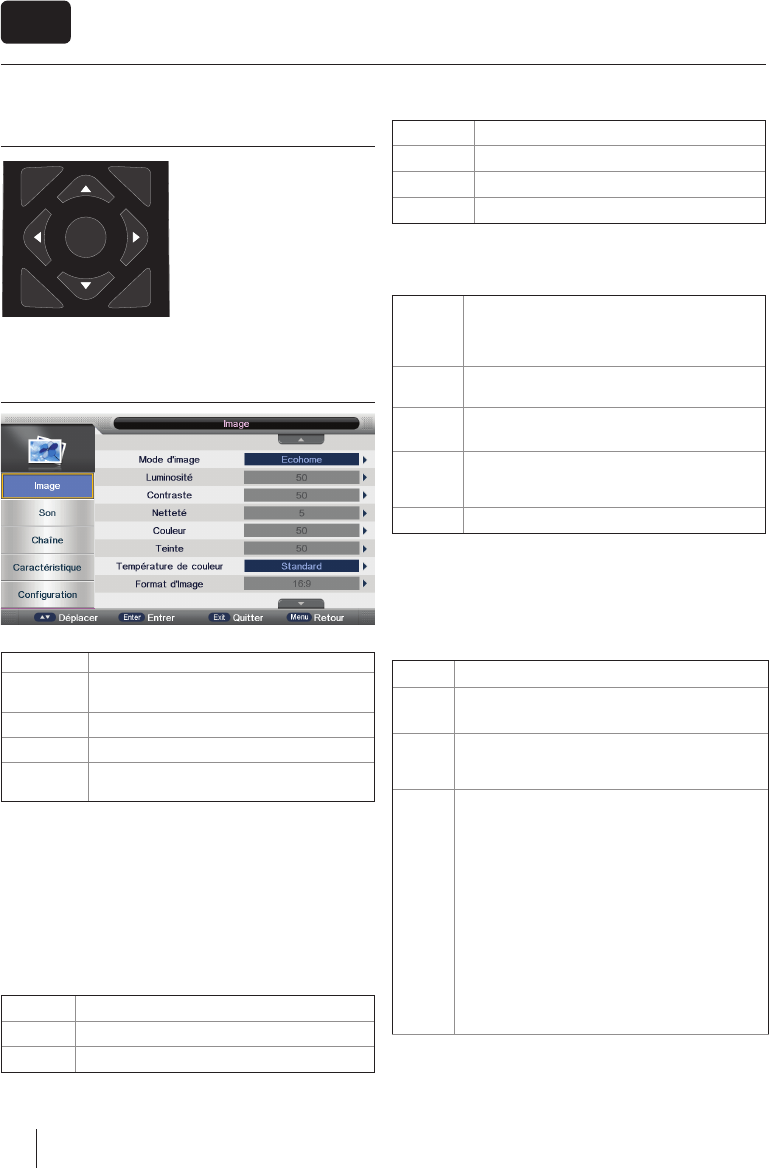 Fonctionnement du menu TV