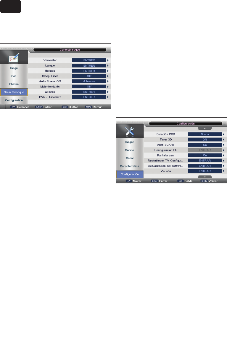 Fonctionnement du menu TV