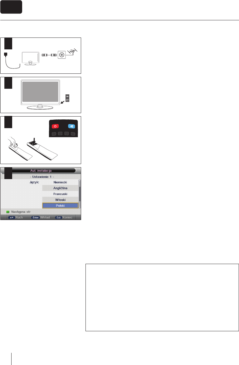 3. Dostarczone baterie wkładamy do pilota i włączamy TV naciskając przycisk