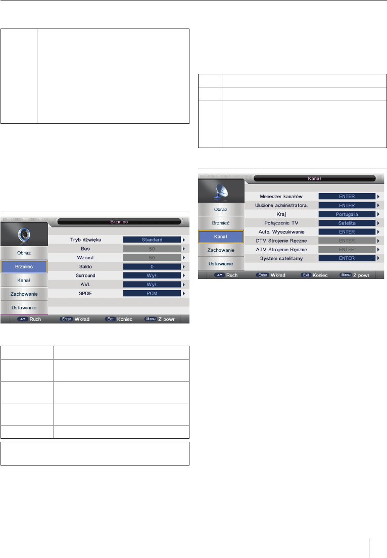 Bas - Służy do ustawienia poziomu tonów niskich w dźwięku