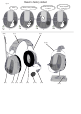 LT AUSŲ PAGALVĖLIŲ NUĖMIMAS IR KEITIMAS F:1 Norėdami nuimti ausų pagalvėlę, užkiškite pirštus už pagalvėlės vidinio krašto ir stipriai patraukite į priekį. F:2 Išimkite esamus įdėklus ir įdėkite naujus putplasčio įdėklus. F:3 Pritvirtinkite vieną ausies pagalvėlės pusę ausies kaušelio griovelyje ir spauskite priešingą pusę, kol ausies pagalvėlė užsifiksuos. Naudojimo ir laikymo sąlygos • Jei ketinate gaminio nenaudoti, išimkite maitinimo elementus.