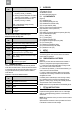 HU 9.2. CHANNEL [CSATORNA] (A:10–A:11 ábra és K:A táblázat) RÁDIÓFREKVENCIA-TÁBLÁZAT MAGYARÁZATA Rádiófrekvenciák Táblázat ref. Leírás K:A Rádiófrekvenciák K:1 Csatornaszám K:2 Frekvencia (Hz) 9.5. (A:10–A:11 ábra és K:B táblázat) CTCSS (CONTINUOUS TONE CODED SQUELCH SYSTEM – FOLYAMATOS HANGJELES KÓDOLÁSÚ ZAJZÁR) FREKVENCIATÁBLÁZAT MAGYARÁZATA Táblázat ref. A 8 rendelkezésre álló csatorna közül a (+) gombbal (A:10), illetve a (−) gombbal (A:11) lehet választani. 9.3.