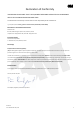 Uygunluk Beyanı 3M SVENSKA AB, BU BELGEDE TANIMLANAN EKİPMANLARIN AŞAĞIDA BELİRTİLEN AVRUPA YÖNERGELERİ İLE UYUMLU OLDUĞUNU BEYAN EDER. Bu uygunluk beyanı, sadece üreticinin sorumluluğu altında düzenlenmiştir. Ürün/model tipi Hearing protector headband X5A-EU (7000103995 / XA007706956) Üretici ve ilave bilgiler 3M Svenska AB Box 2341, Malmstensgatan 19, SE 331 02, Värnamo, Sweden Telephone No: +46 (0)370 69 42 00, Telefax No: +46 (0)370 151 30 Üretim tesisi 3M Personal Safety Division ul.