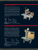 M A C H I N E S P E C I F I C AT I O N S CONVEYOR ATTACHMENT OVERALL MACHINE DIMENSIONS Length Width Height (min./max.) Bed Height (min./max.) Caster Height Length Box Drive Belt Speed Tape Widths 36.5" [930 mm] 31" [785 mm] 52" [1320 mm]/ 86" [2190 mm] 22.5" [570 mm]/ 30" [760 mm] 4" [100 mm] 18" [455 mm] 78 fpm [.40 m/s] 36 to 48 mm – Infeed/Exit conveyor – Casters – Three flap folder – Box hold down attachment 36.
