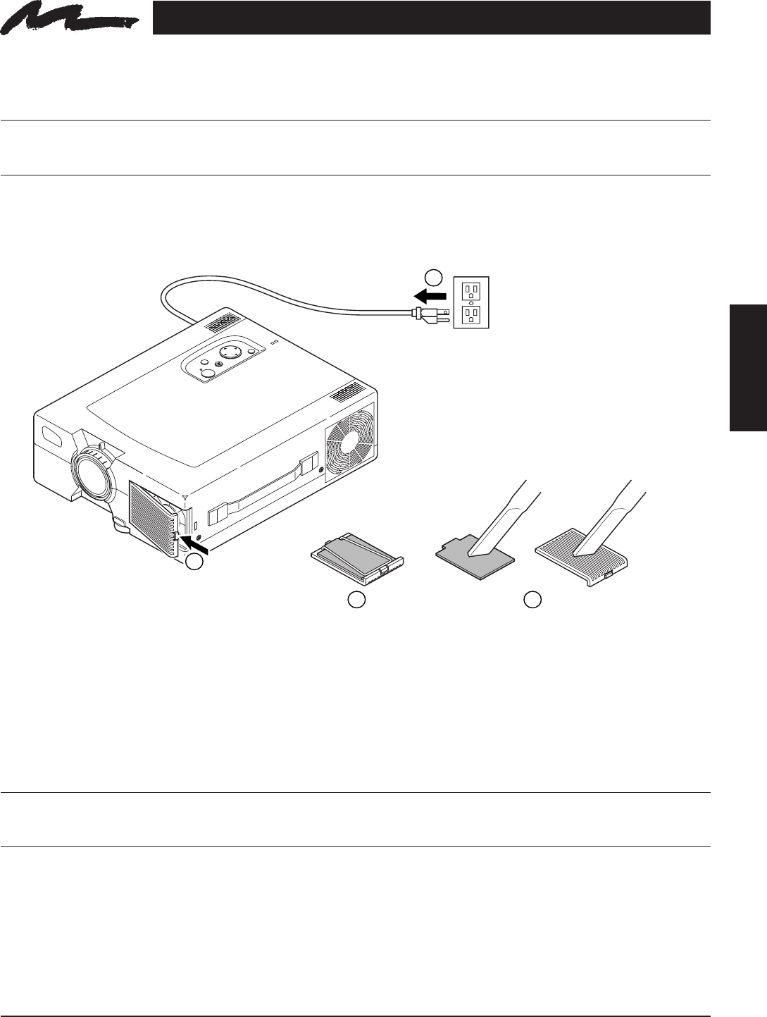 1. Den HAUPTNETZSCHALTER des Projektors ausschalten und das Netzkabel abziehen. Den