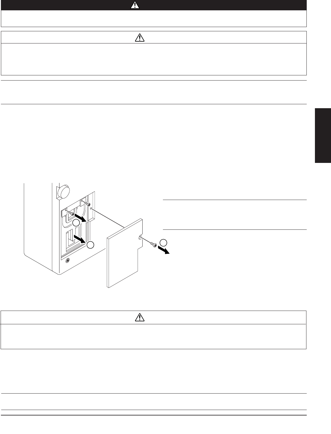 Projektors. Die Sicherungsschraube (1) der Klappe mit einem Schraubenzieher abschrauben, vorsichtig