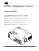 Safeguards ENGLISH INTENDED USE Before operating the machine, please read the entire manual thoroughly. The 3M™ Multimedia Projector 8635 was designed, built and tested for use indoors, using 3M™ brand lamps, 3M™ brand ceiling mount hardware and nominal local voltages.