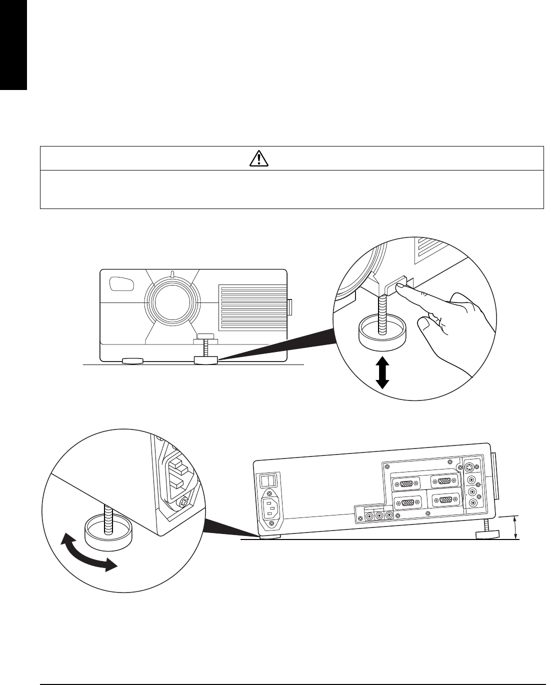 Do not unlock the foot adjuster if the projector is not supported. If the foot adjuster does not lock