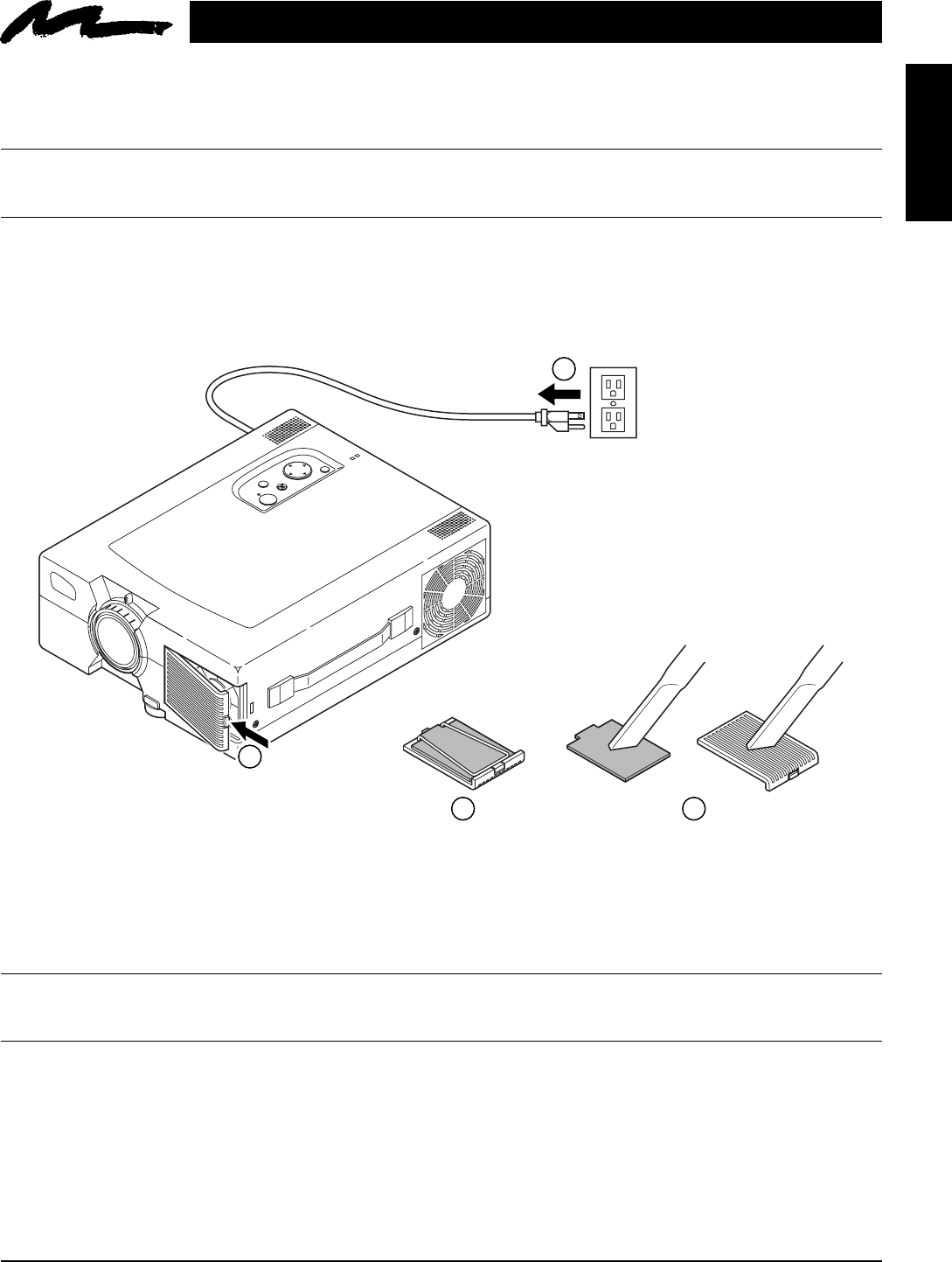 Clean the air filter about every 50 hours. If air flow is restricted due to dust accumulation on filter, the projector