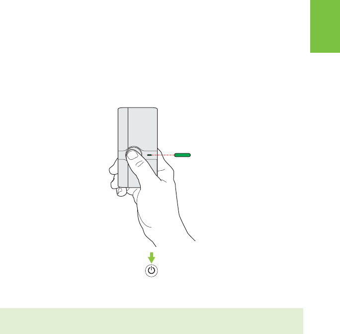 Press and hold the power button for 3 seconds. Release the power button when the projected
