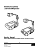 MODEL 2100 OVERHEAD PROJECTOR SECTION 1 INTRODUCTION This service manual contains servicing instruction, troubleshooting guide, adjustments, electrical diagrams, assembly/dis-assembly of parts and the illustrated parts list. ANGULAR BODY (2130/4130, 2140/4140, 2160, 2170) ROUND BODY (2150/4150, 2180) SPECIFICATIONS Physical Width Depth Height Weight - 15.25" 20.25" 26.25" 7.75" 30.75" 22 lbs. 25 lbs. (387mm) (514mm) (667mm) (197mm) (781mm) (10.0 Kg) (11.