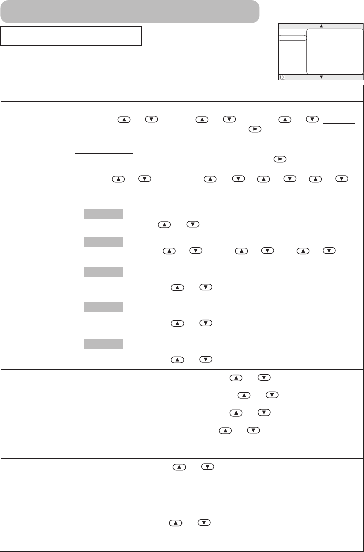• This is a function for video inputs. This item can’t be selected only at RGB