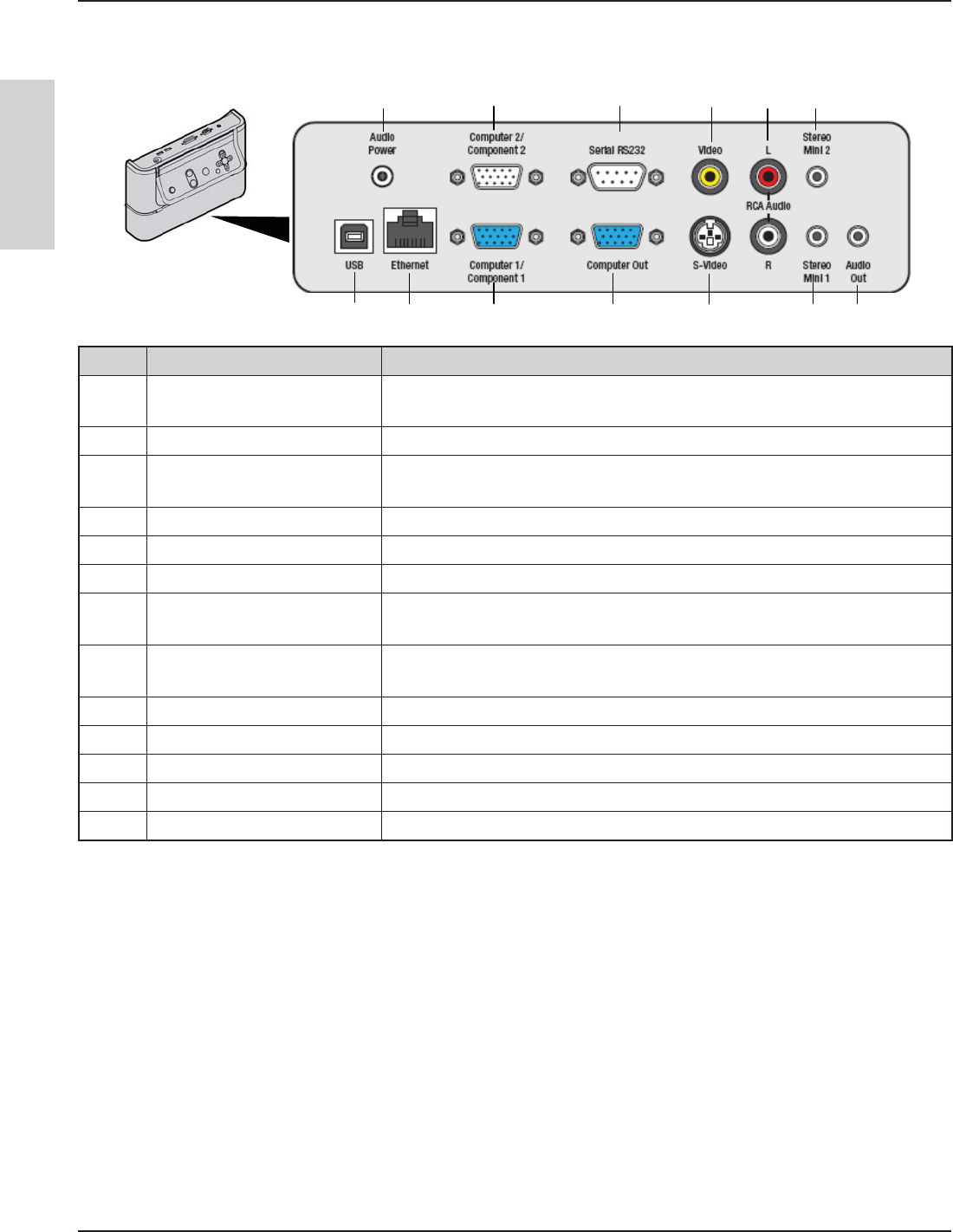 13 Audio Out Connects selected audio input to active speakers or audio amplifier.