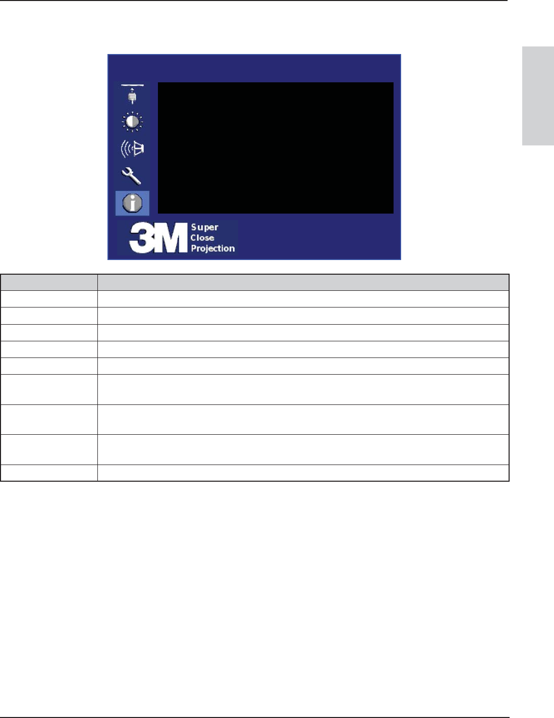 The Information Menu, shown below, is used to display current projector configuration settings.