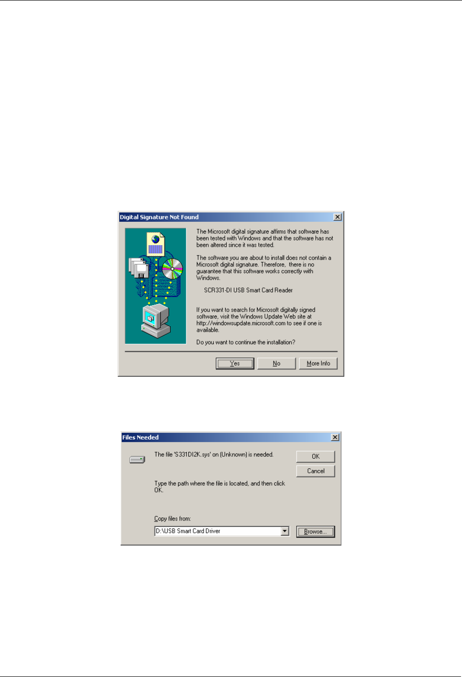 first time, the system automatically prompts you to install two drivers: the smart card reader