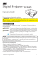 Contents 3M™ Digital Projector WX66 Contents About this manual. . . . . . . . . . . 1 Contents. . . . . . . . . . . . . . . . . . 2 Projector features. . . . . . . . . . . 3 Preparations. . . . . . . . . . . . . . . 3 Contents of package. . . . . . . . . . . . . . 3 Fastening the lens cover. . . . . . . . . . . 3 Part names. . . . . . . . . . . . . . . . 4 Projector. . . . . . . . . . . . . . . . . . . . . . . 4 Control panel. . . . . . . . .
