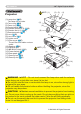 Part names 3M™ Digital Projector WX66 Part names HOT! (1) Projector (1) Lamp door (&55) The lamp unit is inside. (2) Focus ring (&18) (3) Zoom ring (&18) (4) Control panel (&5) (5) Elevator buttons (x 2) (&18) (6) Elevator feet (x 2) (&18) (7) Remote sensor (&12) (8) Lens (&59) (9) Lens cover (&3) (10) Intake vents (11) Filter cover (&57) The air filter and intake vent are inside.