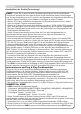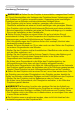 Fehlersuche Nicht auf Gerätefehler hinweisende Anzeichen (Fortsetzung) Anzeichen Fälle, bei denen kein Gerätedefekt vorliegt. Die Einstellungen für AUDIO/LAUTSPRECHER sind nicht korrekt. Stellen Sie AUDIO/LAUTSPRECHER im AUDIO-Menü korrekt ein. Siehe Seite 36 Der Ton auf Ihrem HDMI-Gerät ist nicht auf lineare PCM eingestellt. Es kommt kein Ton. (Fortsetzung) Der HDMI-Eingang an diesem Projektor unterstützt nur Audio mit linearer PCM. Das Signalformat der HDMI-Geräts wird nicht unterstützt.