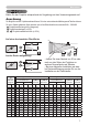 Einrichten Einrichten Stellen Sie den Projektor entsprechend der Umgebung und dem Verwendungszweck auf. Anordnung Die Bildgröße und den Projektionsabstand können Sie in den untenstehenden Abbildungenund Tabellen ablesen. Die in der Tabelle enthaltenen Werte beziehen sich auf ein Bildschirmbild mit maximalerGröße : 1280×800.