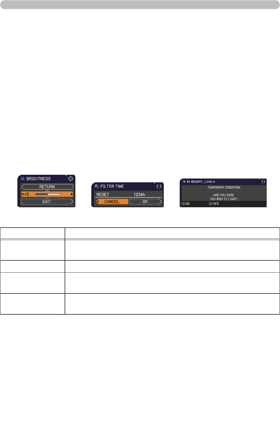 Using the menu function (continued)