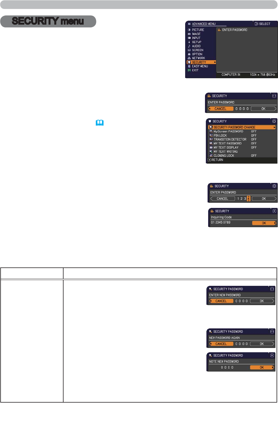 )URPWKH6(&85,7<PHQXLWHPVVKRZQLQWKHWDEOH