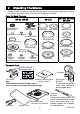 Step 3 If the separation plate is not necessary, remove the screw and take it off. Refer to next page "The Separation Plate". Separation plate Screw Step 4 Adjust the level of the balance using the leveling feet. Step 5 Confirm that the AC adaptor type is correct for your local voltage and power receptacle type. Hook Step 6 Connect the specified AC adapter to the balance. Warm up the balance for at least one hour with nothing on the weighing pan. Step 7 Confirm correct weighing.