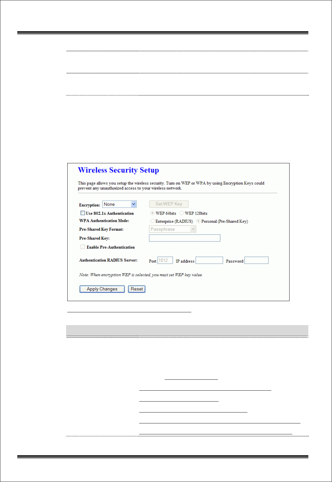This page allows you setup the wireless security. Turn on WEP, WPA, WPA2 by