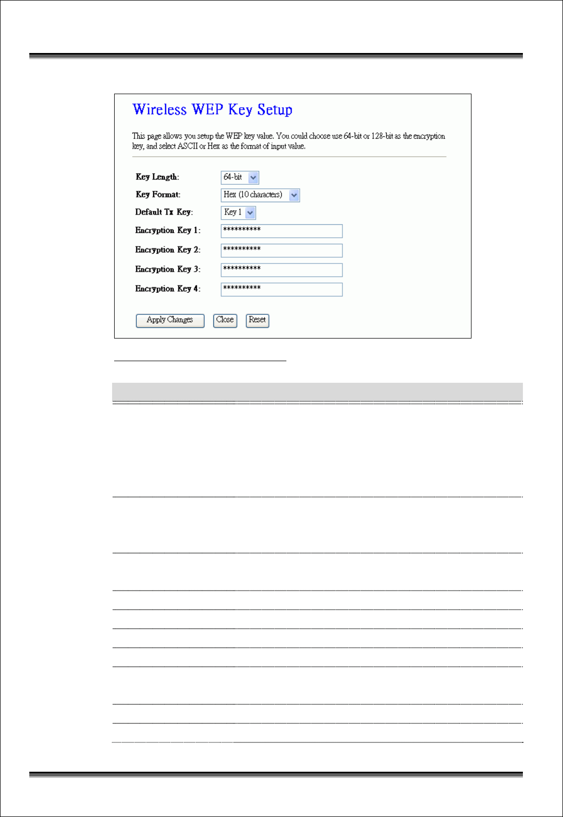 Encryption Key 1 Secret key 1 of WEP security encryption function.