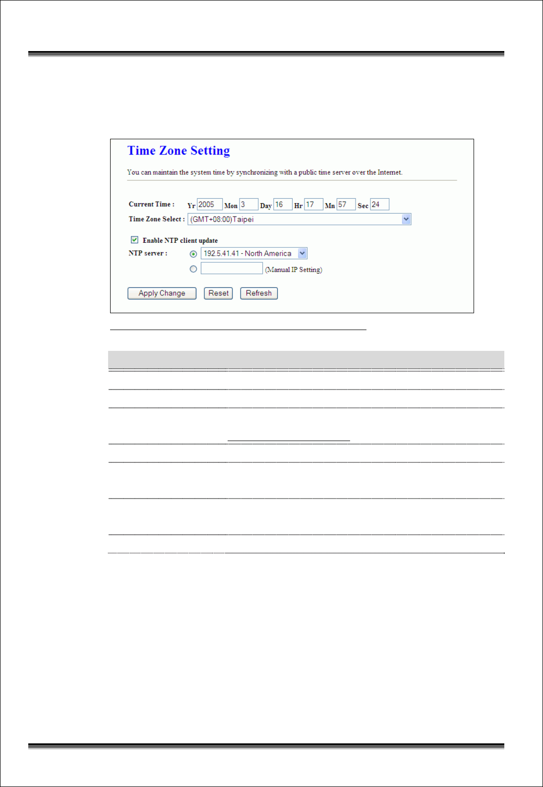 This page is used to configure NTP client to get current time.
