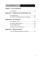 Mini-ITX Chapter 4 EMB-945T Rev.B Driver Installation 4.1 Installation……………………………………………..4-3 Appendix A Programming The Watchdog Timer A.1 Programming .........................................................A-2 A.2 ITE 8712 Watchdog Timer Initial Program.............A-6 Appendix B I/O Information B.1 I/O Address Map ....................................................B-2 B.2 Memory Address Map............................................B-3 B.3 IRQ Mapping Chart ...................................
