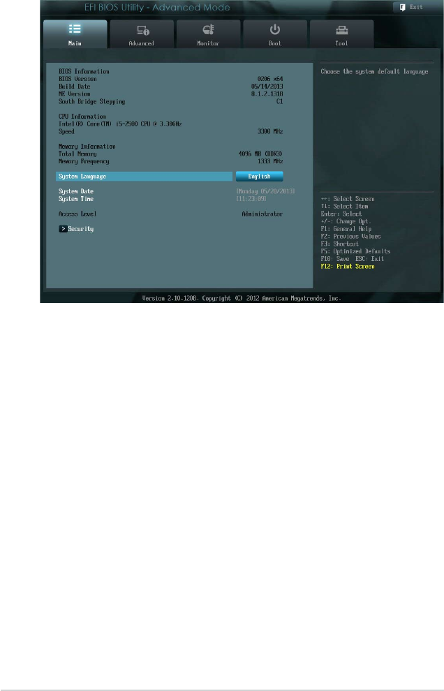 To select an item on the menu bar, press the right or left arrow key on the keyboard