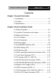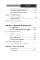 Industrial Motherboard IMBI-Q57 Contents Chapter 1 General Information 1.1 Introduction................................................................ 1-2 1.2 Features .................................................................... 1-3 1.3 Specifications ............................................................ 1-4 Chapter 2 Quick Installation Guide 2.1 Safety Precautions .................................................... 2-2 2.2 Location of Connectors and Jumpers .......................