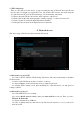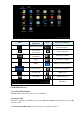 Icon Function instruction Icon Back to main menu Show current power status The current system time Function instruction Note when the system finds new devices. Set the alert time Reduce the volume Back Louder the volume Menu Menu for Function Block. Google search Adjust screen brightness System clock WIFI on/off New mail USB Connection Status Bar 3.6 USB HOST Function 3.6.1 USB- HOST Definition The Mini USB on the device can be used as USB Host. 3.6.