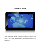 English User Manual Thanks for buying the Tablet PC. This manual is to introduce the functions of the device, as well as matters which need attention. Please read this manual before you use the device.