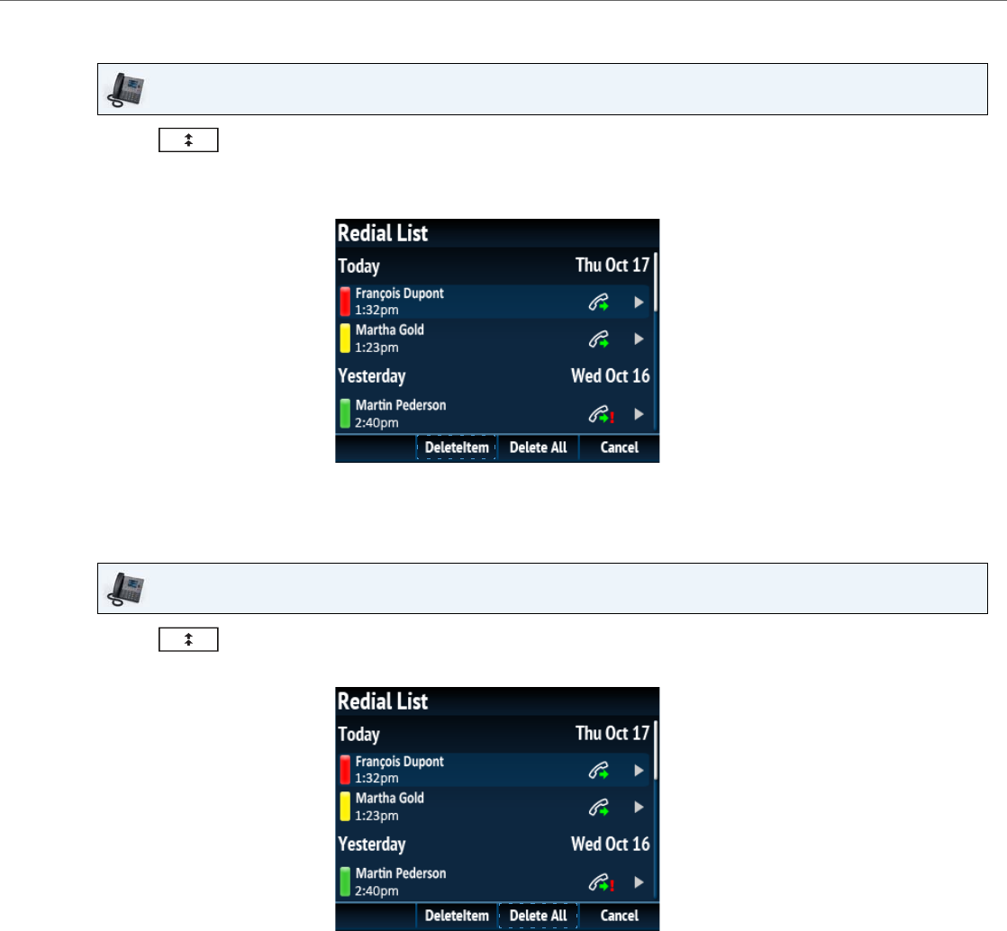 2. Use the 5 and 2 keys to scroll through the entries in the Redial List.