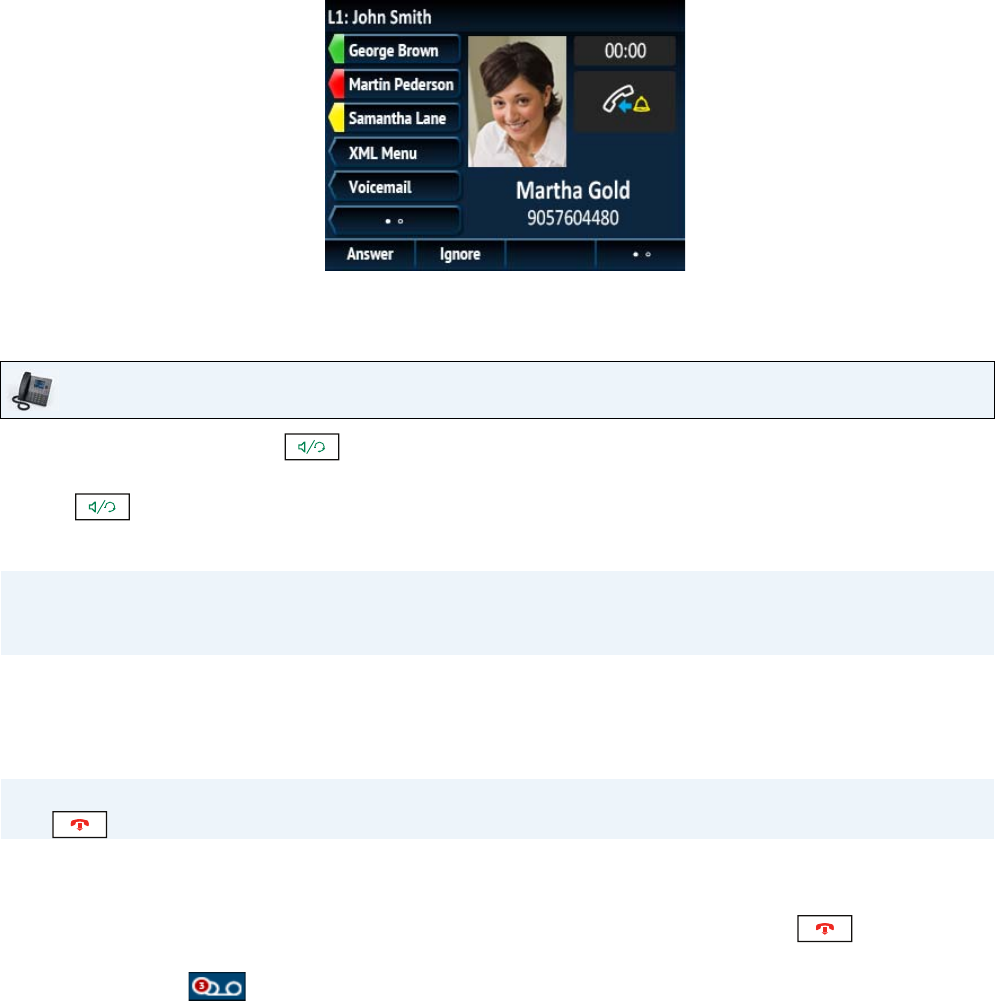 • For handsfree operation, press , the Answer softkey, or the line/call appearance button for the