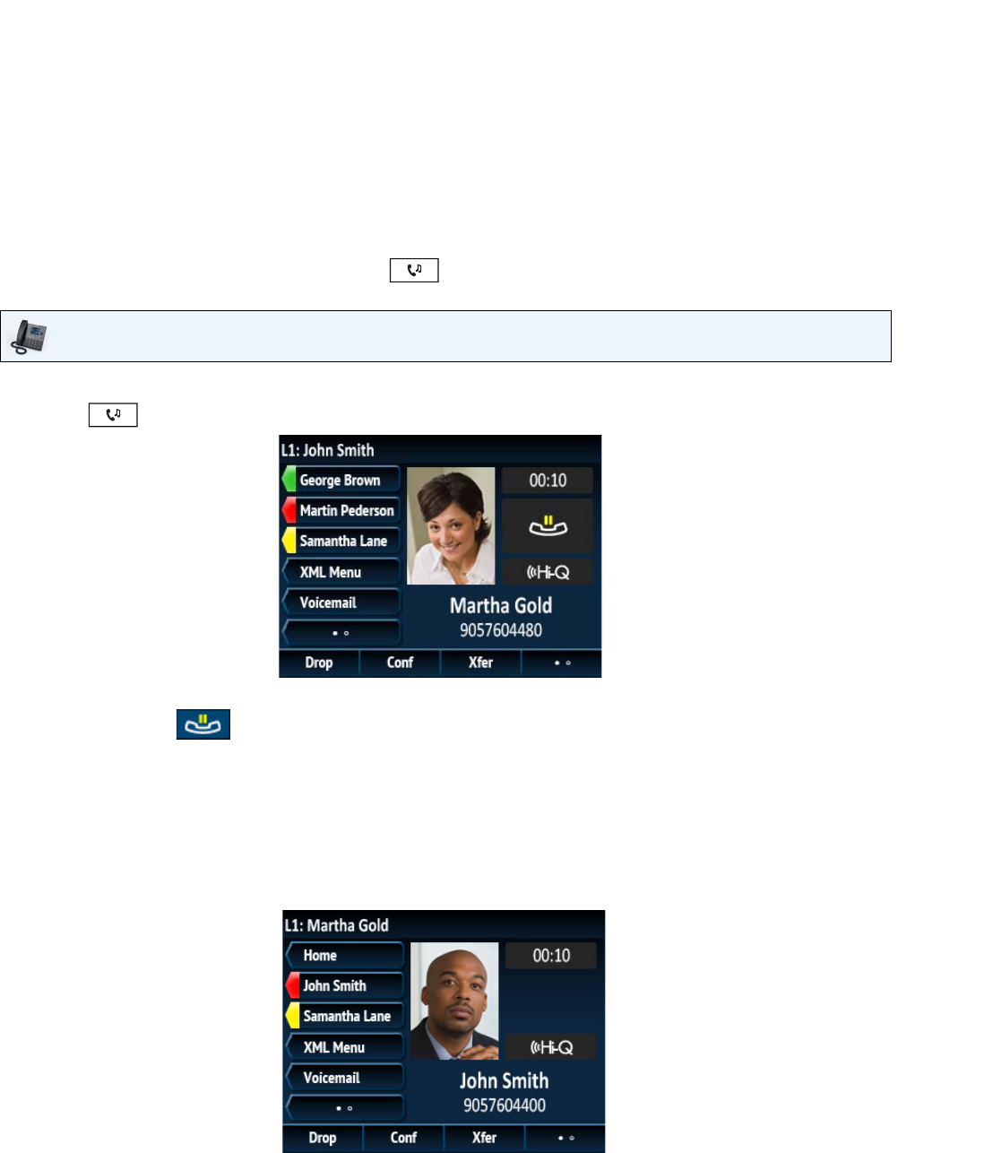 When you are connected to a call, you can use the softkeys or hard keys on the phone to place a call on hold, transfer a