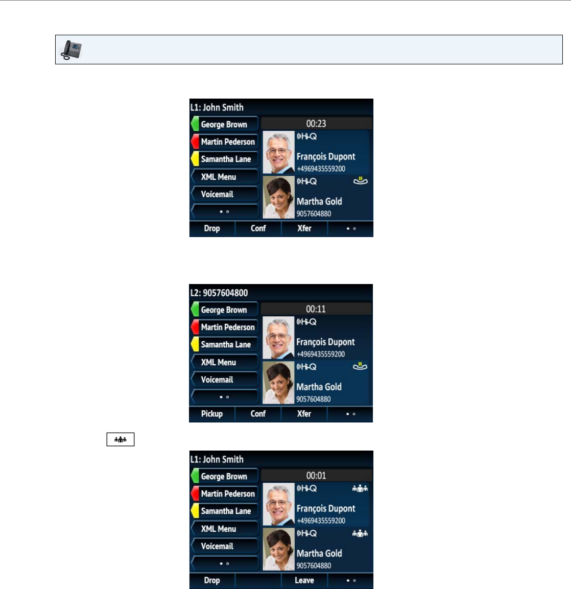 3. Press the key or Conf softkey. The two parties will connect with you to form a conference call.