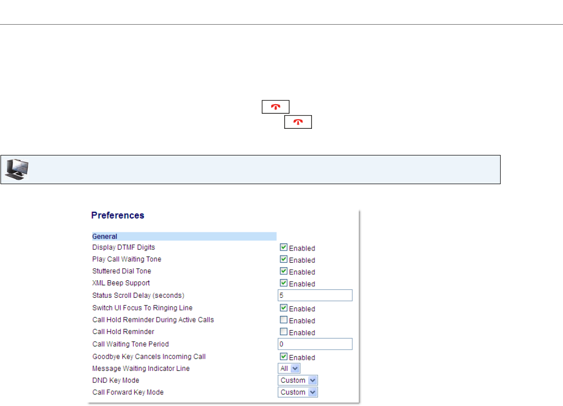 are on an active call. When you disable this parameter, pressing the key hangs up the active call.
