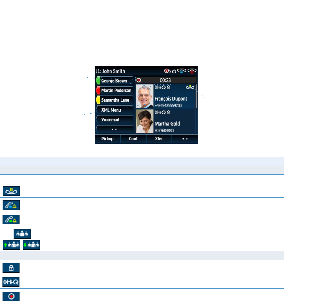 The following table identifies and describes the call status and call feature indicators on the Multi-View Call screen.