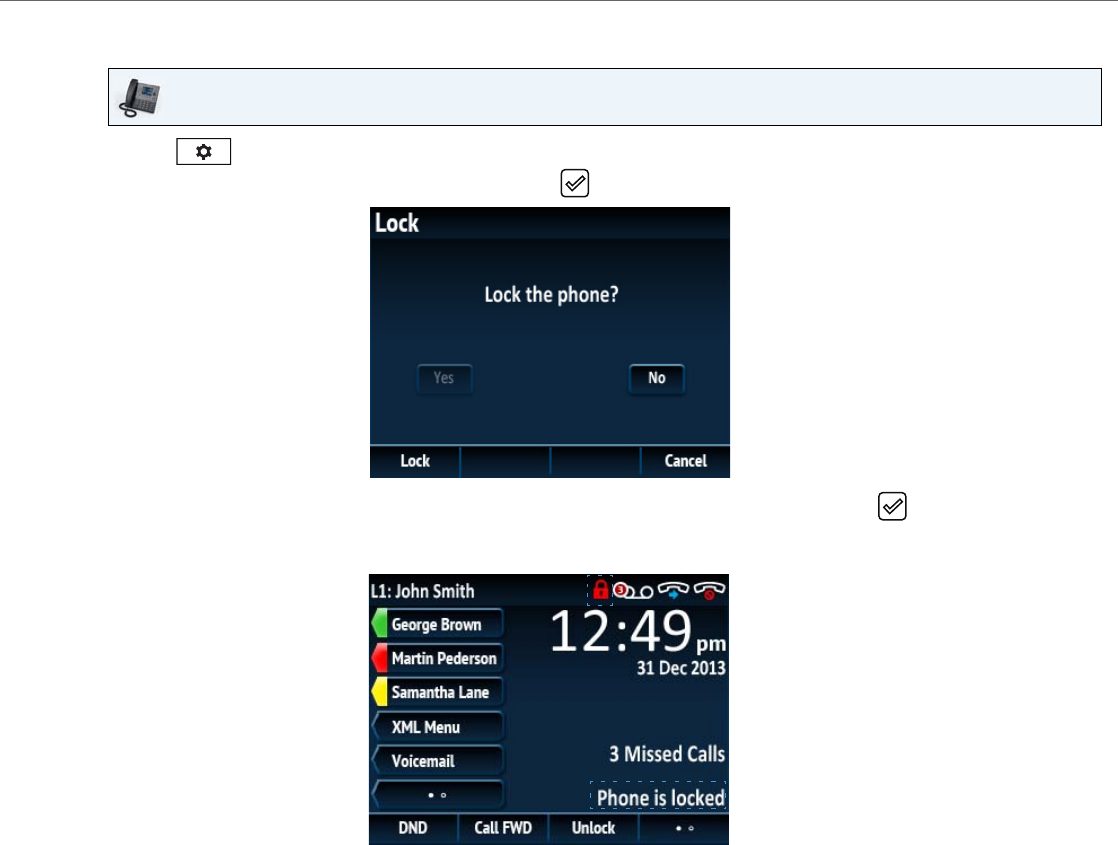 Alternatively, if configured, you can lock the phone by simply pressing a Lock softkey.