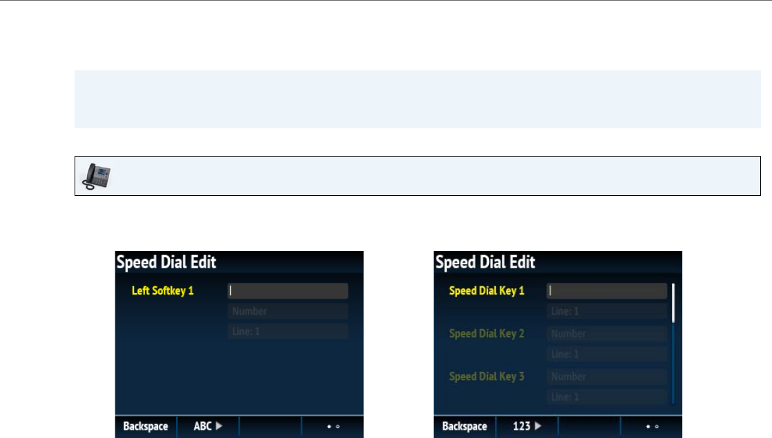 Pressing and holding down a softkey, dialpad key, or expansion module key on the phone initiates a speed dial feature.