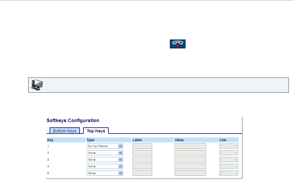 If DND is enabled, callers calling into the phone hear a busy signal or a message, depending on how your System Adminis-