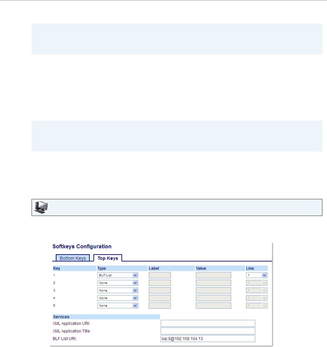 If you set a key to use BLF/List, you must also enter a BLF List URI at Operation > Softkeys and XML > Services. The BLF List