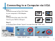 Connecting to a Computer via VGA Step 1: Connect one end of the VGA Cable to your computer’s VGA Adapter. Step 2: Connect the other end of the VGA Cord to your P450’s VGA port. Step 3: In the Main Menu Select “Inputs” icon and then the “VGA” Icon.