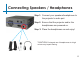 Connecting Speakers / Headphones Step 1: Connect your speakers/headphones to the projector’s audio port. Step 2: Ensure that the projector and/or the headphones are powered on. Step 3: Place the headphones on and enjoy! *CAUTION: Prolonged use of headphones at a high volume may impair hearing.