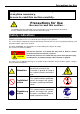 本用戶指南說明了設備何處有危險、危險類型、如何避免危險等。在設備可預計到的危險之處或其附近貼有警告標籤。