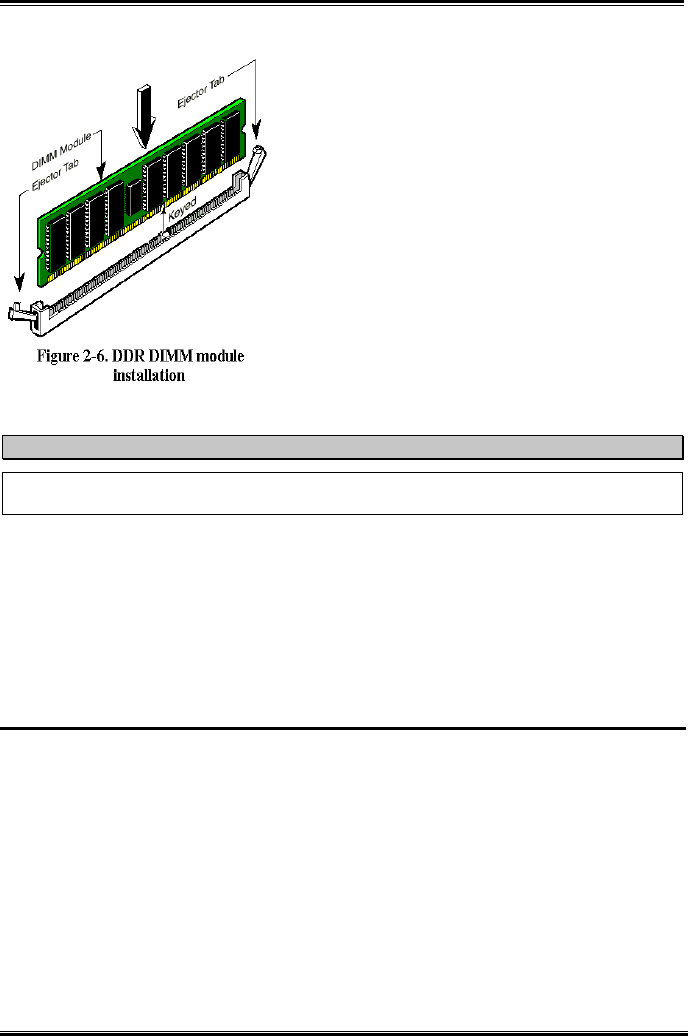 When you install a DDR DIMM module fully into the DDR DIMM socket, the eject tab should be